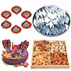 Big Hamper of Kaju Katli Dry Fruits Crackers and Diya